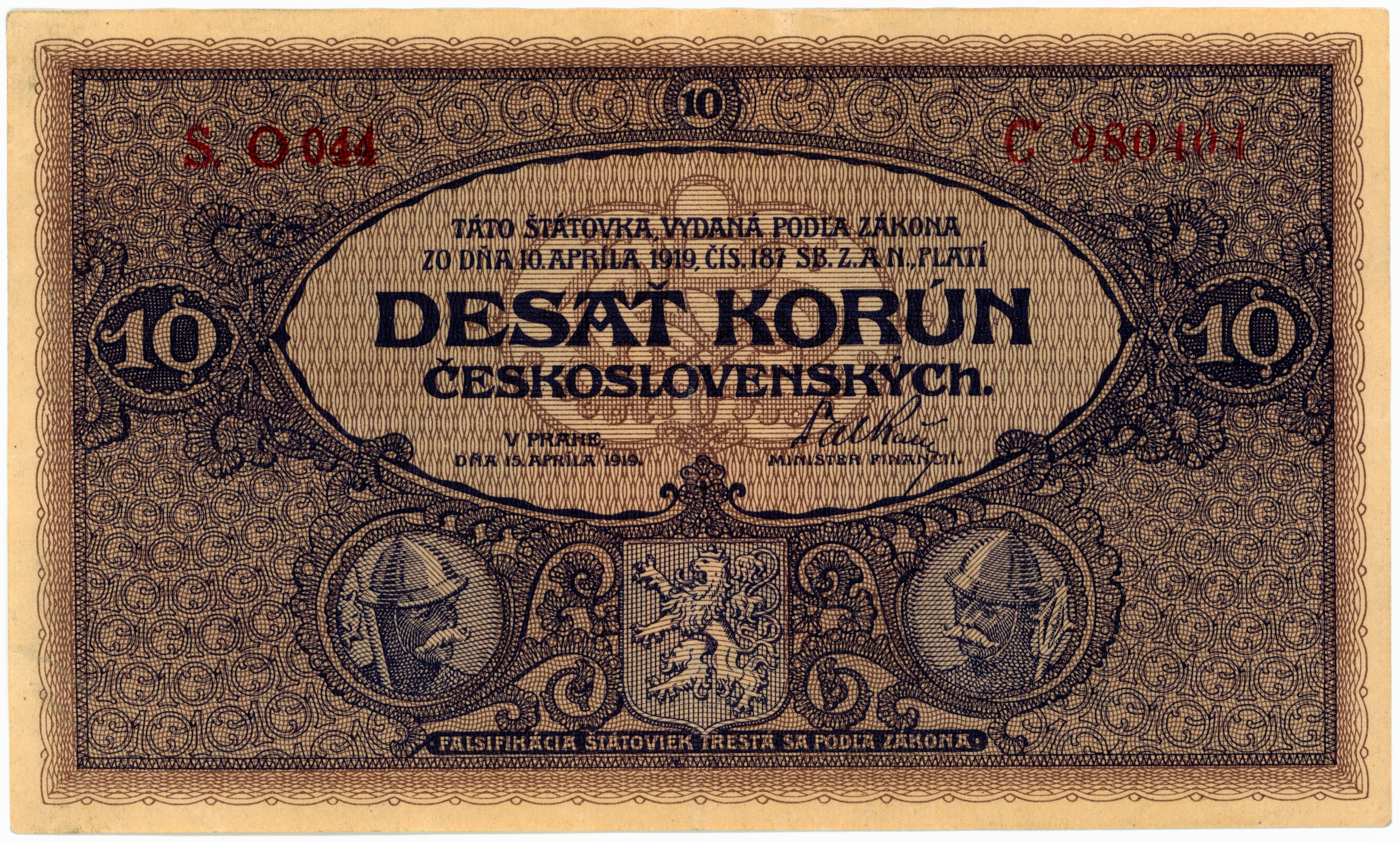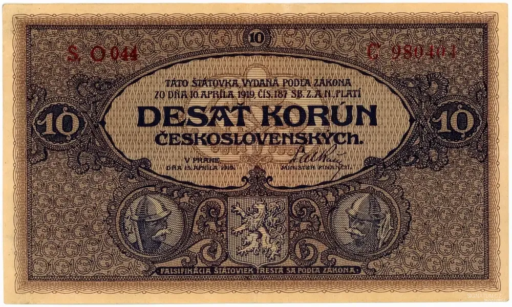 Tato "desetikoruna" je důkazem zlaté éry československého bankovnictví, kdy se na vzhledu platidel podíleli největší umělci své doby. Alfons Mucha, otec československé známky i bankovky, vtiskl tomuto platidlu svůj nezaměnitelný rukopis. Zajímavostí je, že modelkou pro jeden z portrétů byla údajně jeho dcera Jaroslava.