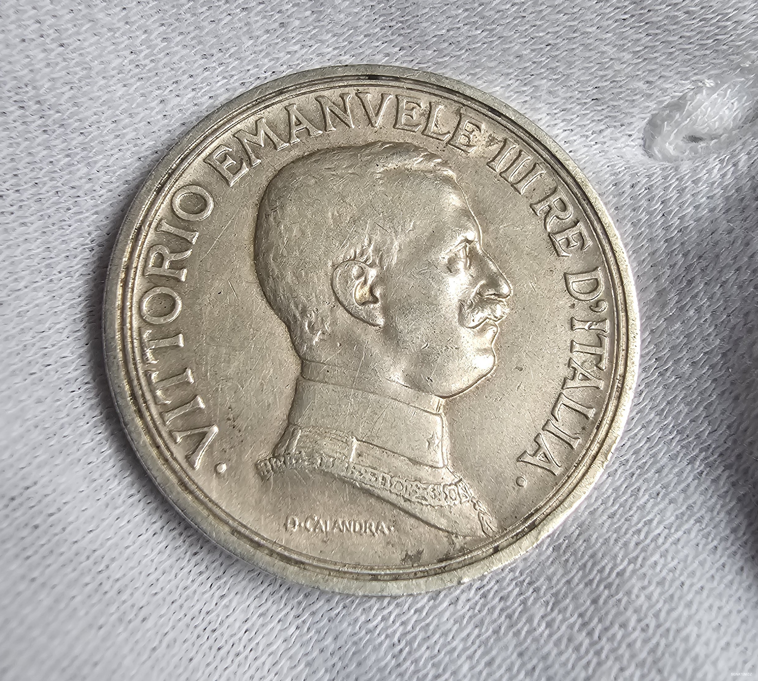 Historický a umělecký význam: Mince nese portrét krále Viktoria Emanuela III., vášnivého numismatika, za jehož vlády vznikly ty nejkrásnější italské ražby. Rubová strana zobrazuje dynamický výjev alegorie Itálie na voze taženém čtyřspřežím koní, což symbolizuje sílu a progres tehdejšího království.