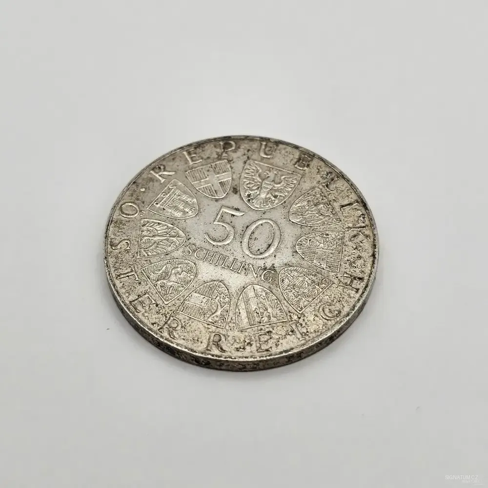 Technická ochrana: Hrana mince je hladká a obsahuje vlisovaný nápis „FUENFZIG SCHILLING“, který sloužil jako ochranný prvek proti padělání.