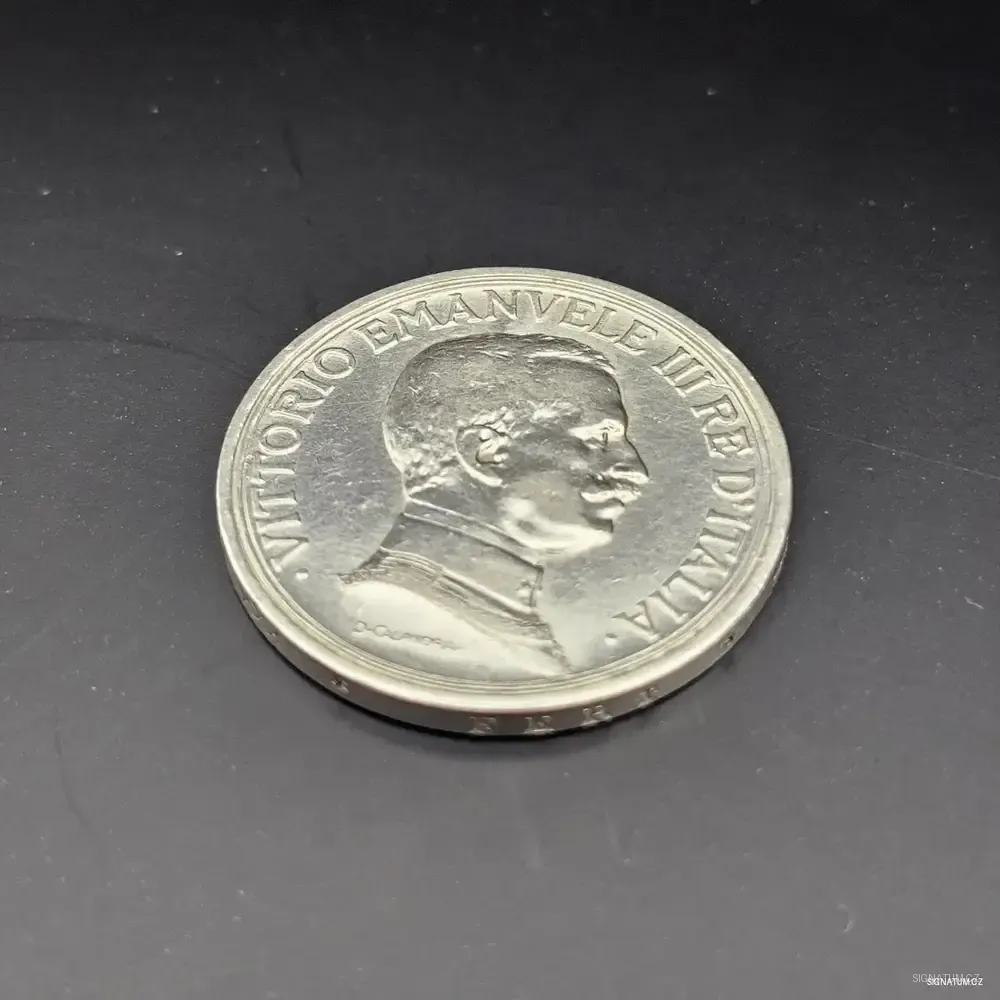 Historický a umělecký význam: Mince nese portrét krále Viktoria Emanuela III., vášnivého numismatika, za jehož vlády vznikly ty nejkrásnější italské ražby. Rubová strana zobrazuje dynamický výjev alegorie Itálie na voze taženém čtyřspřežím koní, což symbolizuje sílu a progres tehdejšího království.