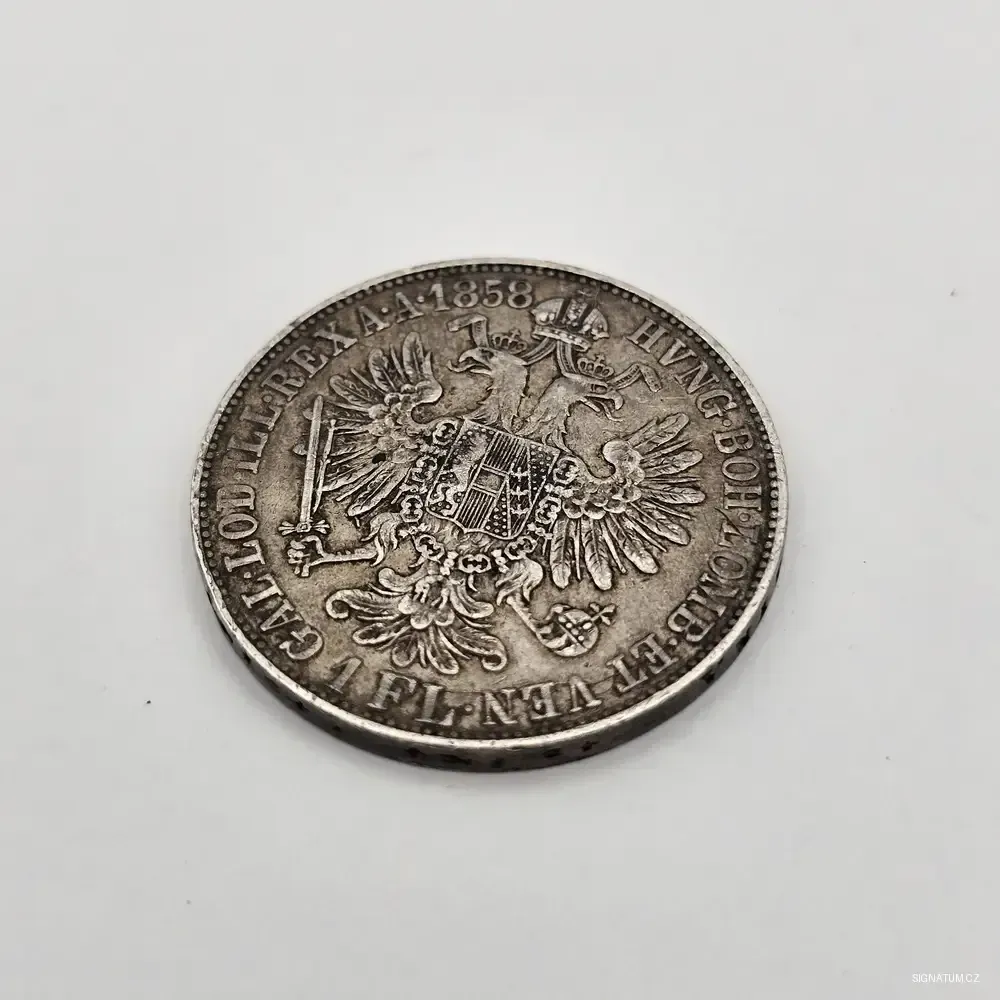 Nabízím k prodeji vzácnější variantu stříbrného zlatníku (Florinu) z roku 1858, raženou v italské mincovně Milán (značka „M“ pod portrétem). Milánské ražby jsou mezi sběrateli vysoce ceněny pro svou nižší emisi a historickou hodnotu spojenou s rakouskou nadvládou v Lombardii. Mince je ve velmi slušném sběratelském stavu s čitelnými detaily a přirozenou patinou. Ideální investiční kousek pro náročnější sběratele Františka Josefa I.