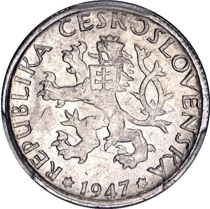 Zajímavostí je, že se jedná o jeden z mála motivů, který v různých obměnách přečkal několik politických režimů (včetně předválečné éry). Pro sběratele je tento typ základním kamenem sbírky poválečného Československa. Ražba probíhala v mincovně v Kremnici a byla ukončena v roce 1953 v souvislosti s drastickou měnovou reformou, po které byly tyto mince nahrazeny hliníkovými variantami.