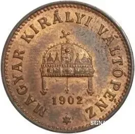 Nejdrobnější nominál korunové měny v uherské části monarchie. Navzdory své malé velikosti nese stejně precizní zobrazení Svatoštěpánské koruny jako vyšší hodnoty. Byl nepostradatelný pro nejmenší transakce a doplatky v tehdejším velmi přesném finančním systému.