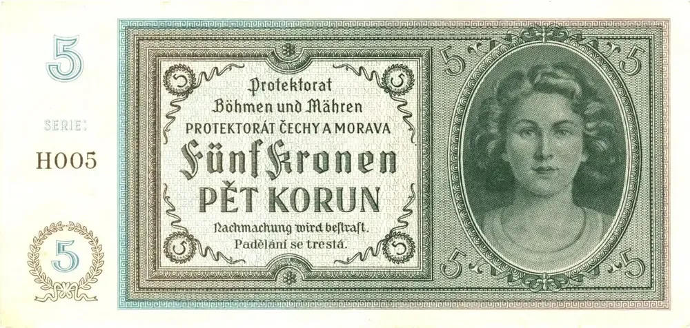 Jedná se o ikonickou bankovku (státovku) vydanou v období Protektorátu Čechy a Morava. Bankovka je charakteristická svým dvojjazyčným textem (německo-českým), který byl pro toto období povinný, přičemž němčina je uvedena na prvním místě.