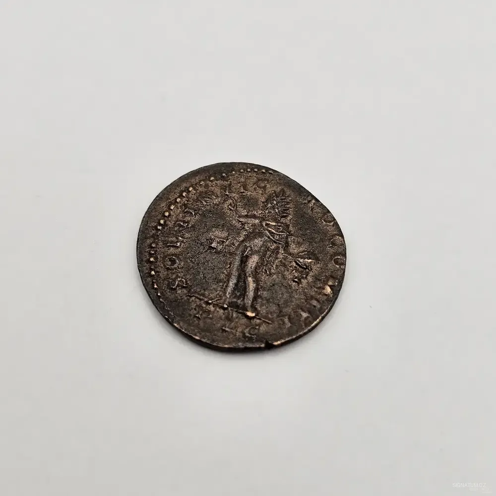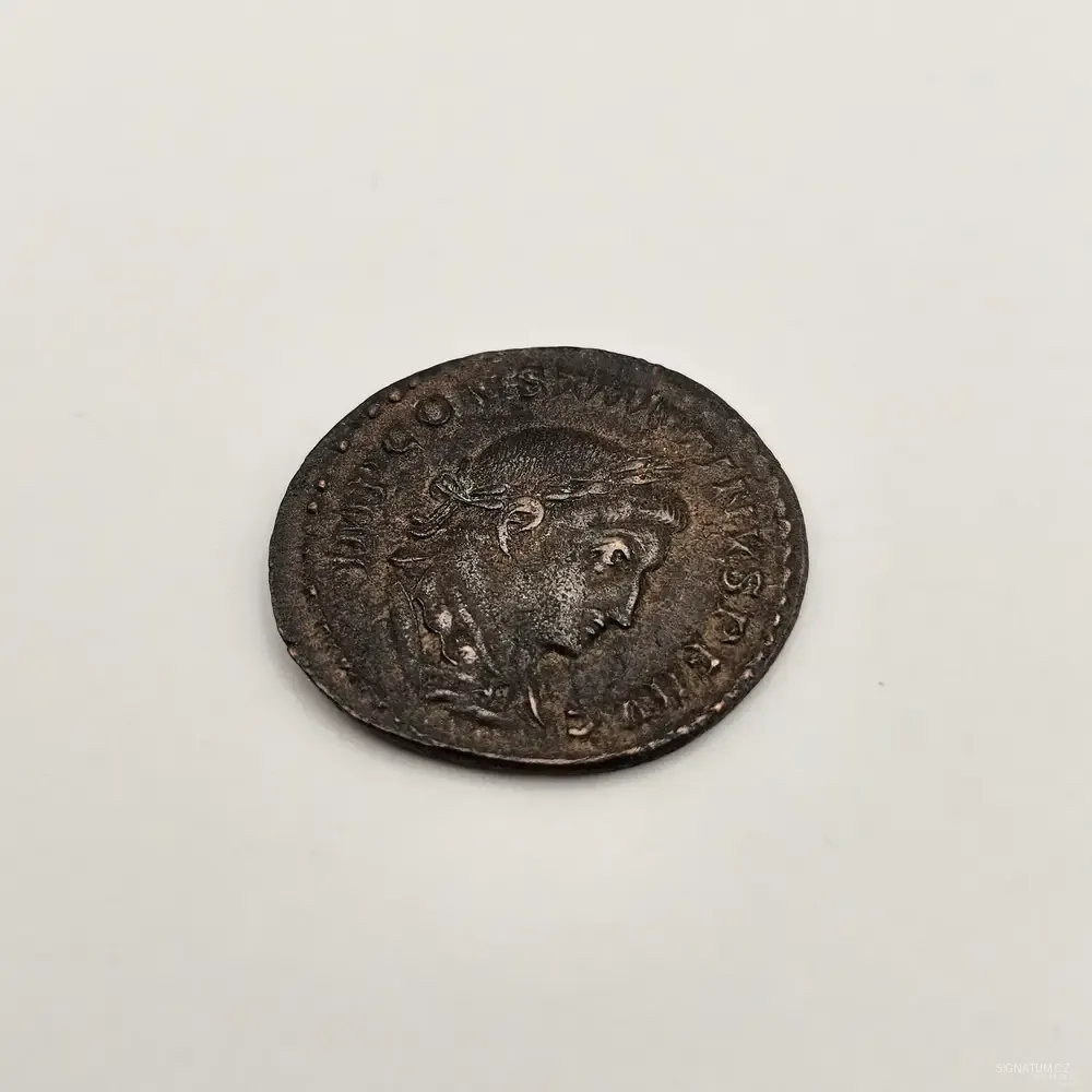 Tato mince byla vyražena v době, kdy Konstantin I. již ovládal západní část říše, ale stále ještě oficiálně uctíval sluneční kult boha Sol Invictus. Ten mu sloužil jako symbol božské moci a jednoty. Je to fascinující doklad doby přerodu mezi pohanským Římem a nastupujícím křesťanstvím, které Konstantin o pár let později plně legalizoval.