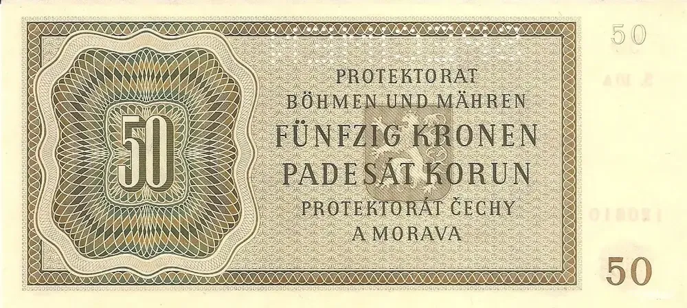 Tato bankovka byla připravena a vydána až v závěrečné fázi války (září 1944). V té době už inflace rostla a kvalita papíru u některých emisí klesala, nicméně tato padesátikoruna si zachovala velmi vysokou uměleckou úroveň díky rytině Jindry Schmidta. Dívčí motiv měl působit apoliticky a klidně v kontrastu s válečnou vřavou. Platila až do obnovení československé měny v roce 1945.