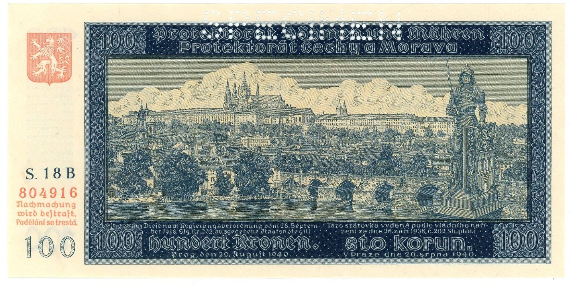 100 Korun 1940 – Hradčany a rytíř Bruncvík
